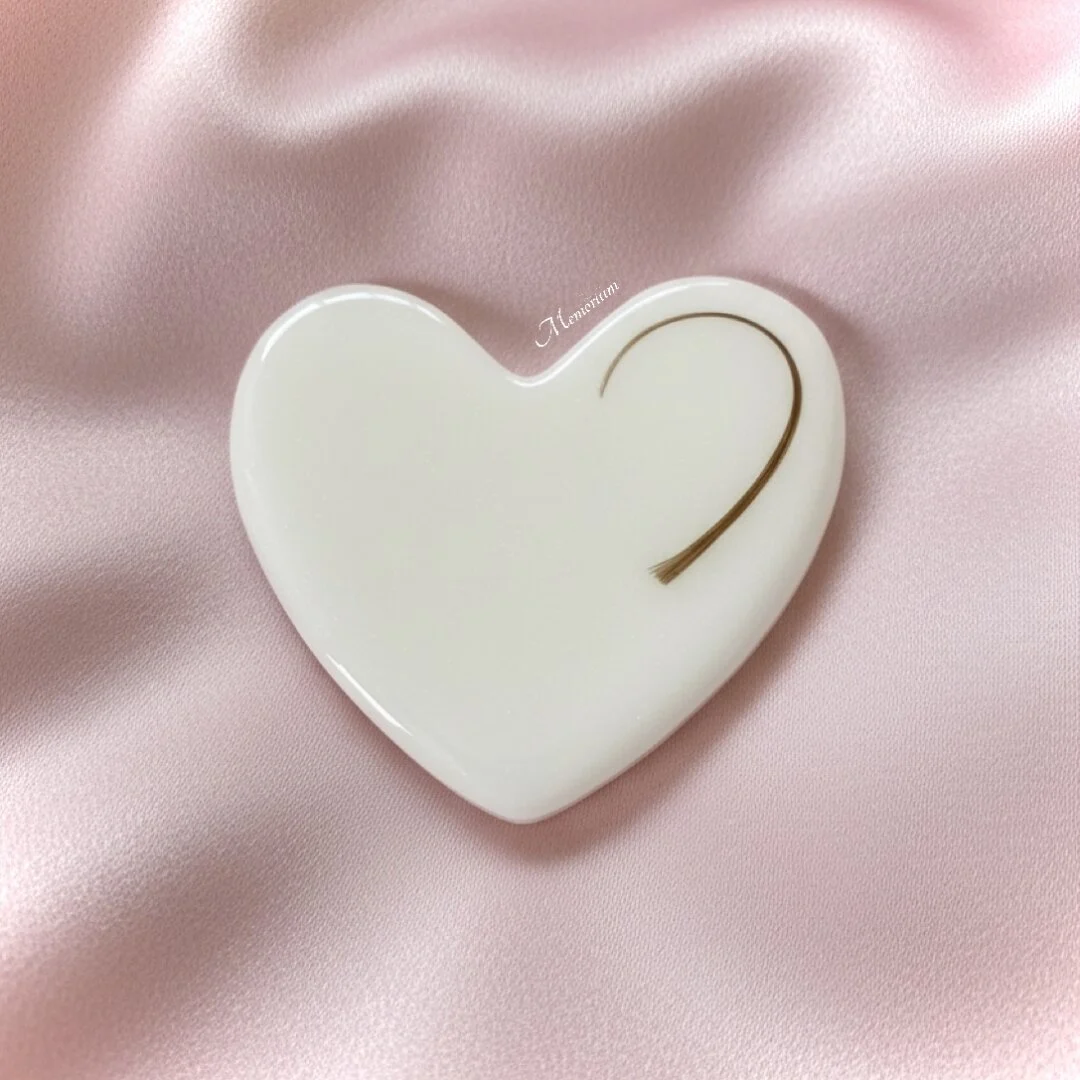 Het hartje is ± 4,8 cm in diameter en wordt vervaardigd uit UV-stabiele polymeerhars. Daarna wordt het afgewerkt met een transparante beschermlaag die beschermt tegen krassen, UV-straling en chemische invloeden zoals zeep, parfum en make-up. Zo blijft jouw aandenken jarenlang mooi.