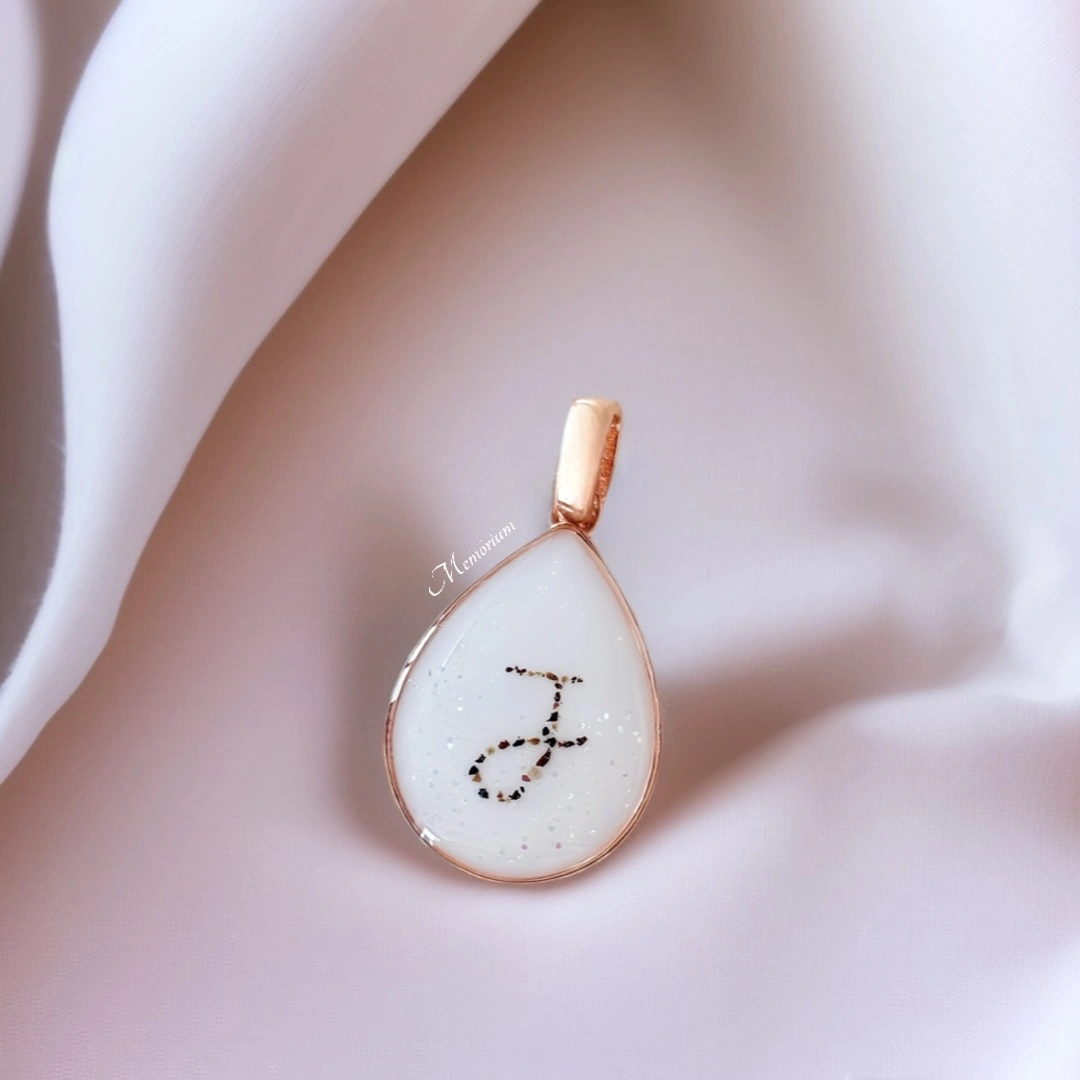 Personaliseer de Milla hanger met diverse vullingen zoals moedermelk, as, haarlokjes, dierenvacht, melktandjes, stukjes navelstreng of zelfs een stukje dop van een zwangerschapstest. Door deze unieke elementen toe te voegen, creëer je een sieraad met een diep persoonlijke betekenis dat je dierbare momenten en geliefden symboliseert.