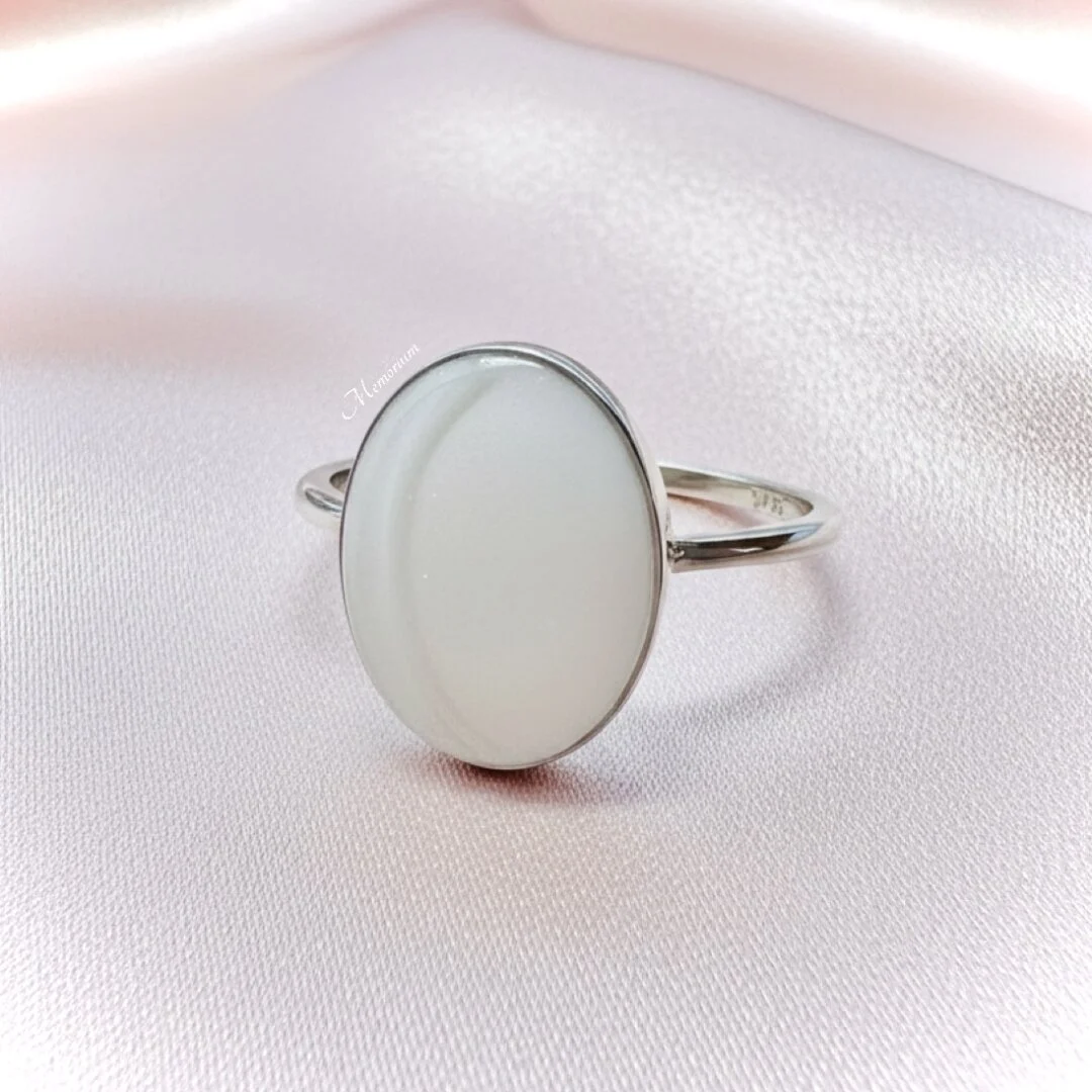 De Olivia ring is verkrijgbaar in verschillende formaten: 4×6 mm, 6×8 mm, 8×10 mm en 10×14 mm. Het kuipje wordt gevuld met UV-stabiele polymeerhars en daarna afgewerkt met een transparante beschermlaag. Deze laag beschermt tegen krassen, UV-straling en chemische invloeden van zeep, parfum of make-up. Hierdoor blijft je ring lang mooi.